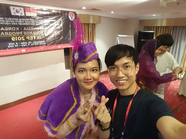 Selama fase Indonesia di Jakarta, kontingen Indonesia dan Korea Selatan mengunjungi kantor GO-Jek, Tokopedia, mendapatkan materi dari para experts, belajar membatik di Galeri Indonesia Kaya, mengunjungi Universitas Indonesia, dan melakukan courtesy call ke Kementerian Pemuda dan Olahraga Republik Indonesia.pergi ke Sumedang untuk berkunjung ke UMKM yang ada disana seperti UMKM Opak Oded Conggeang, lalu desa yang mengelola bisnis ubi cilembu. Di Sumedang, aku pun melaksanakan kegiatan Host Family bersama dengan Aa Vancher dari Jawa Barat, Gaeul Eonni delegasi Korea Selatan, dan Yohan, Head Of Delegation dari Korea Selatan. Selama aktivitas Host Family, kami tidak hanya ke tempat-tempat wisata tetapi juga mencicipi kuliner Sumedang. Karena banyak menghabiskan waktu bersama, aku memiliki hubungan yang sangat baik dengan Gaeul Eonni. Dia menganggapku sepertinya adiknya sendiri, dan aku menganggapnya sebagai kakak perempuanku! Sebagai orang Indonesia yang pernah menonton drama korea, memiliki teman asal Korea Selatan yang dipanggil ‘eonni’ atau kakak perempuan dalam bahasa Korea, merupakan hal yang sangat menyenangkan!